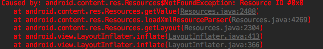 所以看到 Resources$NotFoundException ,我立马就怀疑是不是对方没有加入我提供的资源文件。